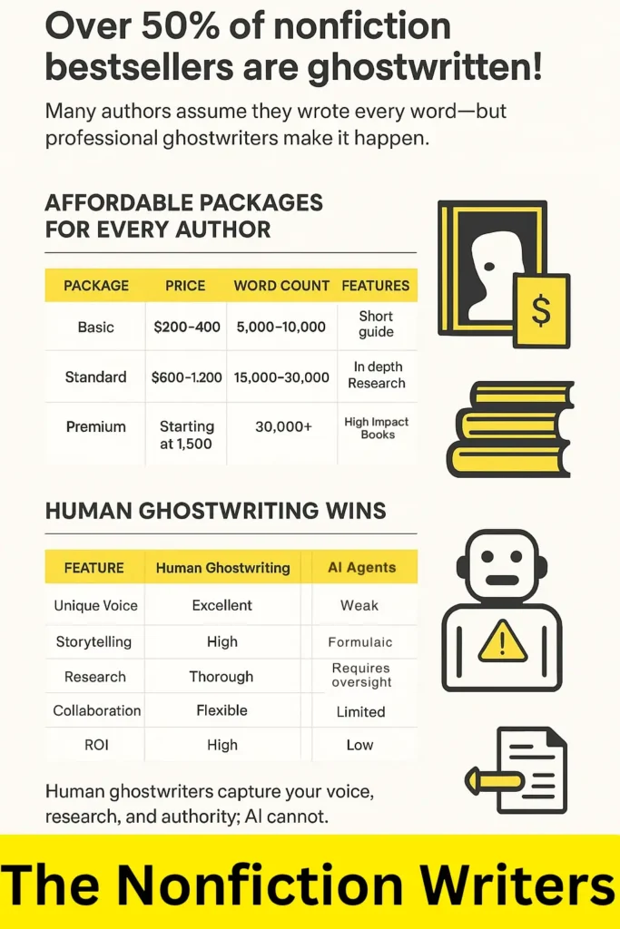 For authors seeking credibility, authority, and measurable ROI, human ghostwriting from The Nonfiction Writers is the clear choice.
